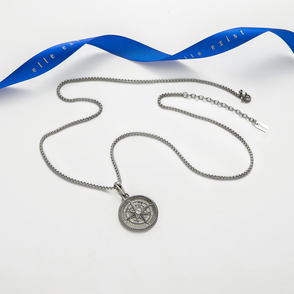 The Explorer's Emblem Necklace showcases a finely detailed compass pendant, symbolizing adventure and the spirit of discovery. Crafted with precision, the pendant features a central gemstone that catches the light beautifully, adding a touch of sophistication. This necklace is perfect for the modern man seeking a blend of style and inspiration, serving as a daily reminder to navigate life’s journey with confidence.