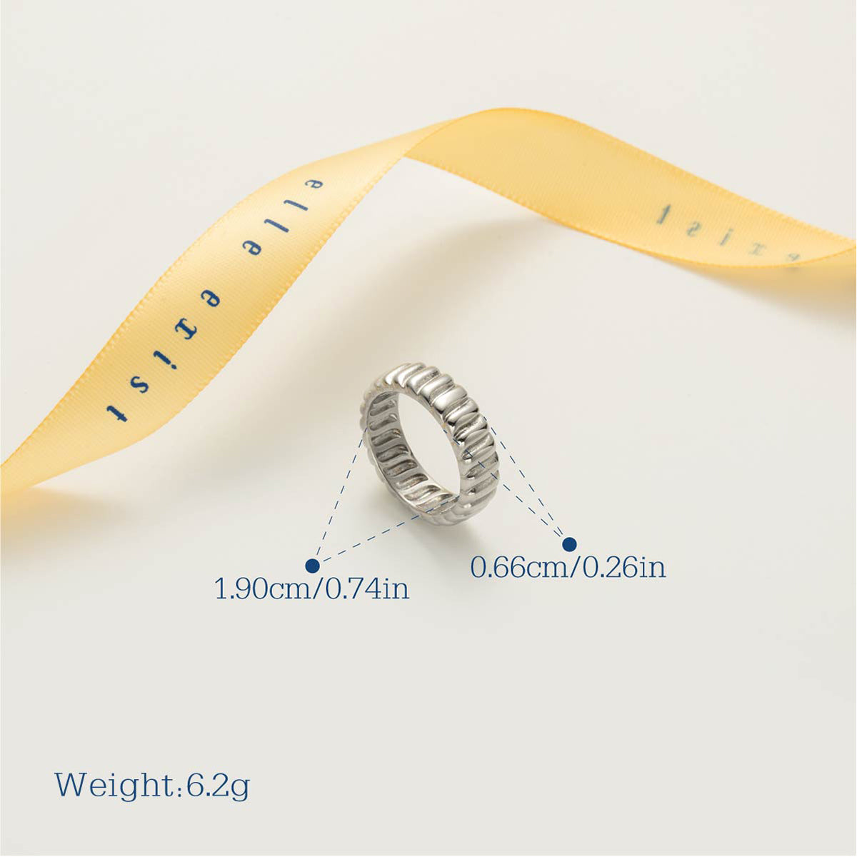 The Ripple Radiance features a sculptural design with elegant ridges that catch the light beautifully. Its unique texture adds visual interest, making it a standout piece. Perfect for everyday wear or special occasions, this band embodies contemporary style and timeless elegance.