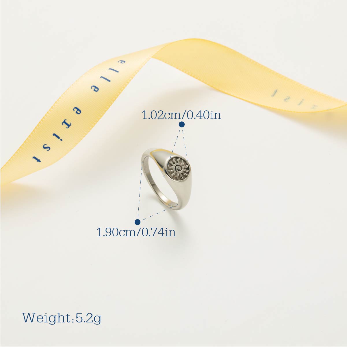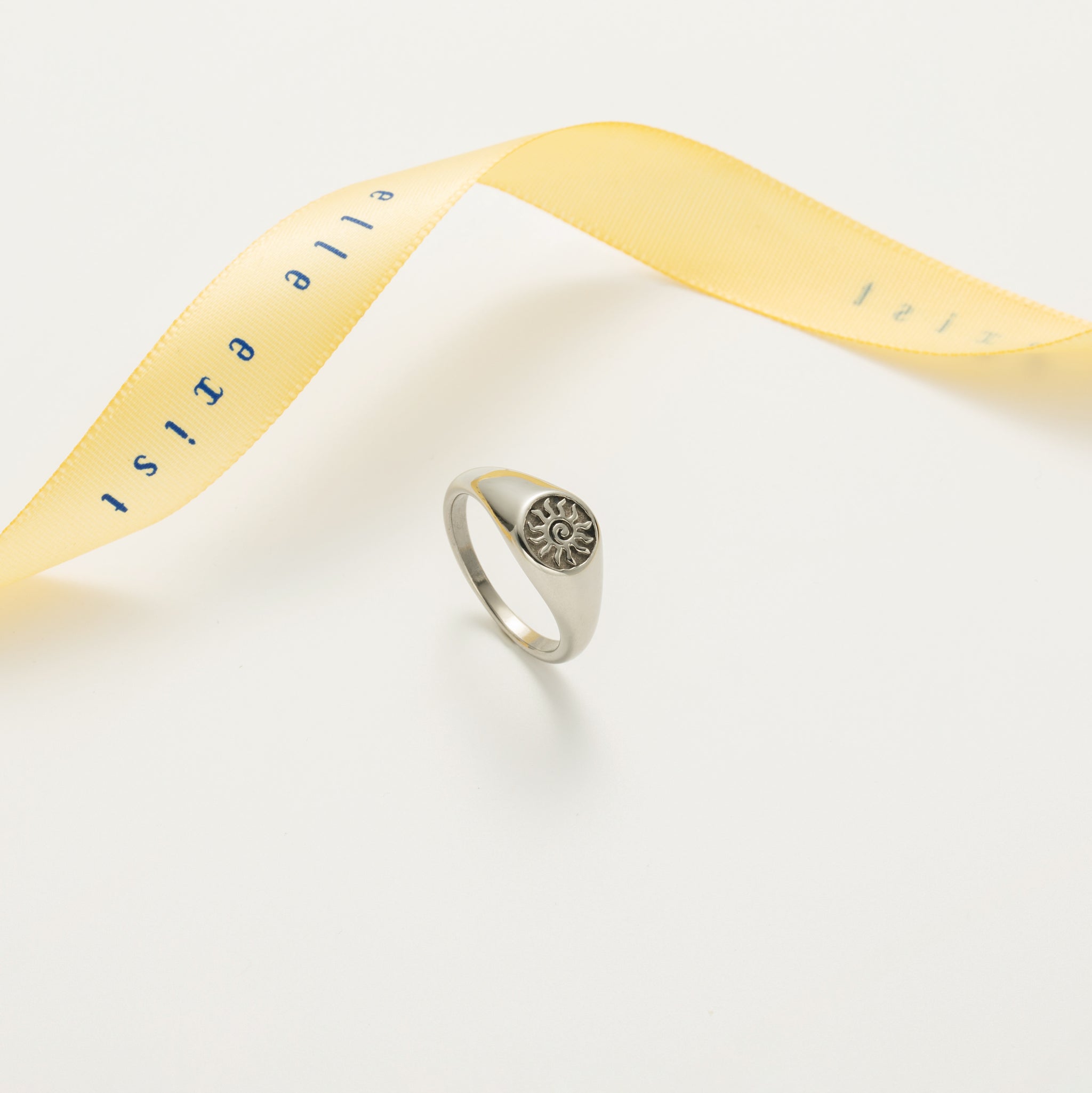 The Solar Emblem ring showcases a striking design featuring a sun motif at its center, symbolizing vitality and energy. The circular emblem is beautifully contrasted against a polished band, creating a harmonious blend of style and meaning. Its unique shape provides a comfortable fit, making it suitable for both casual and formal occasions. This ring is perfect for those who appreciate meaningful symbols and want to add a touch of flair to their jewelry collection.