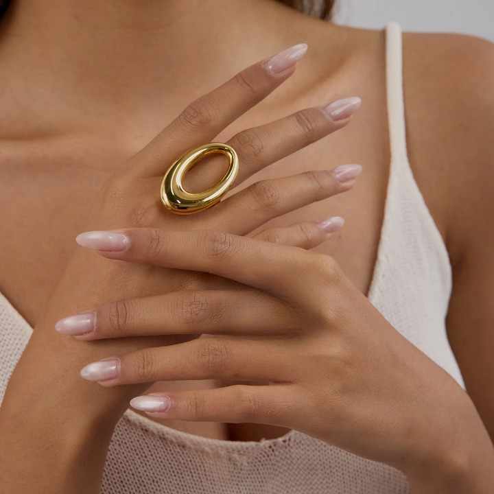 Sleek and modern, this oval ring makes a bold, minimalist statement.