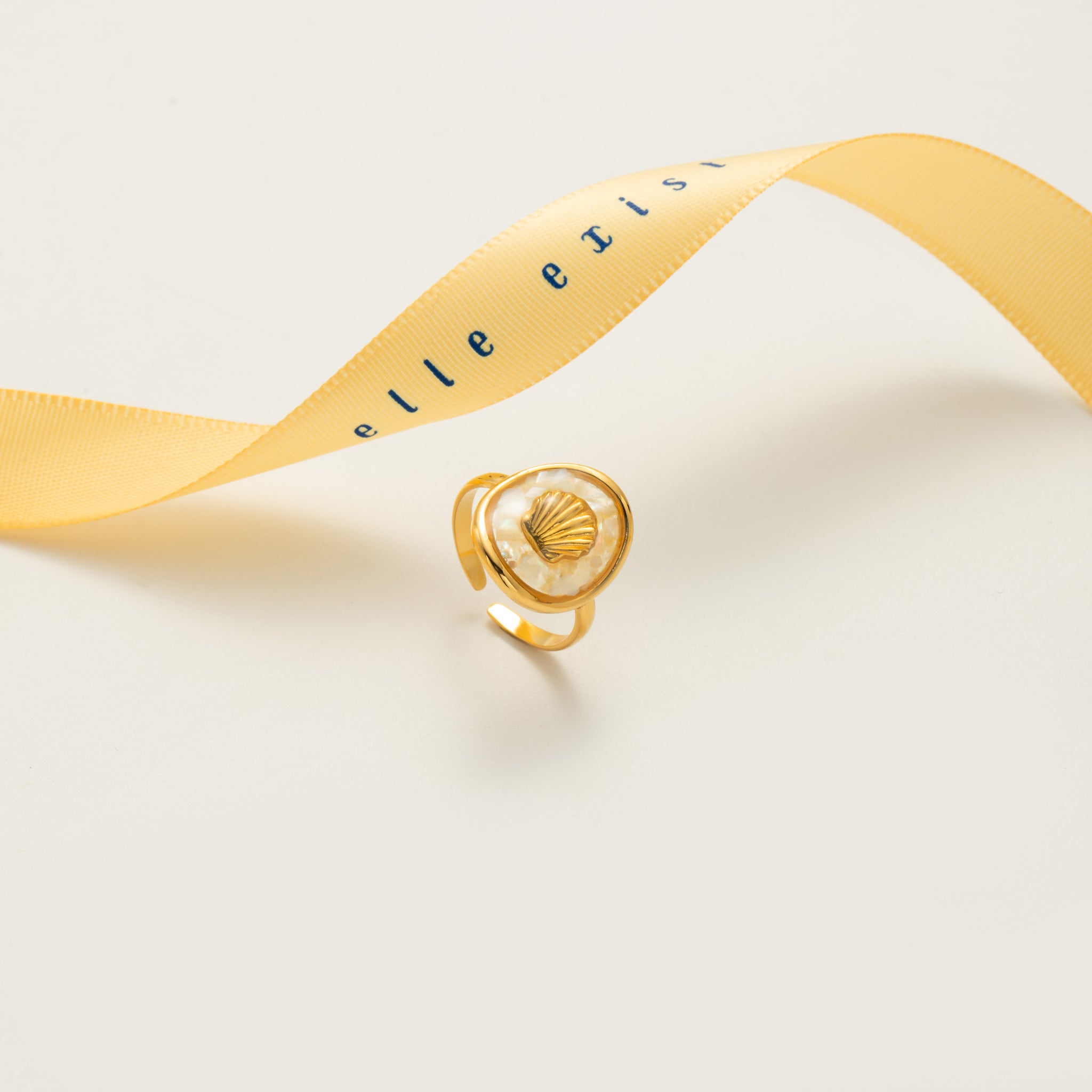 A ring that captures the serenity of the ocean, featuring a delicately sculpted seashell set against a luminous, textured backdrop. Its fluid design evokes the rhythm of gentle waves, making it a timeless piece that brings a touch of seaside elegance to any look.