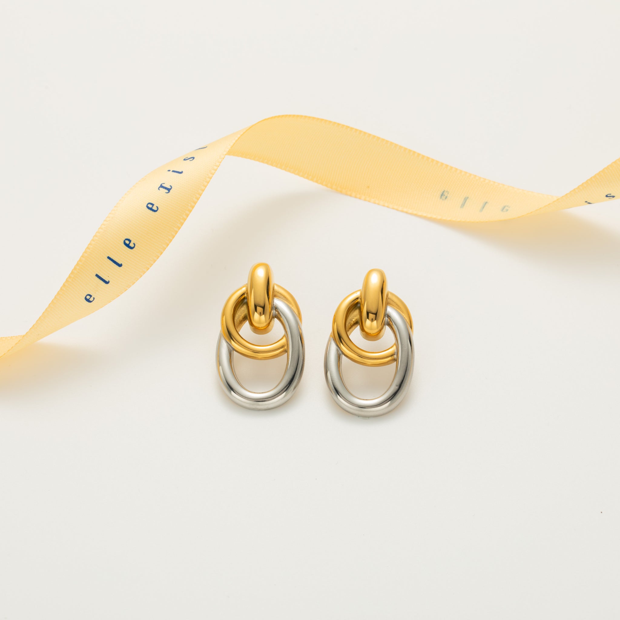 These statement earrings combine sleek gold and silver tones, offering a modern yet timeless design. Perfect for enhancing both casual and formal outfits, these earrings exude elegance and versatility. Lightweight and comfortable to wear, they are an essential addition to your jewelry collection