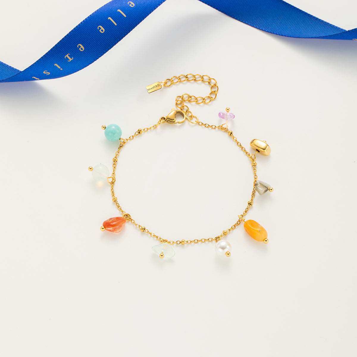The Joyful Cascade bracelet features a charming array of colorful charms that dangle playfully from a delicate chain. Each charm reflects a unique hue, creating a vibrant and cheerful aesthetic. This design embodies a sense of whimsy and joy, making it a delightful accessory for any occasion. Perfect for layering or wearing alone, it adds a splash of color and personality to any outfit.